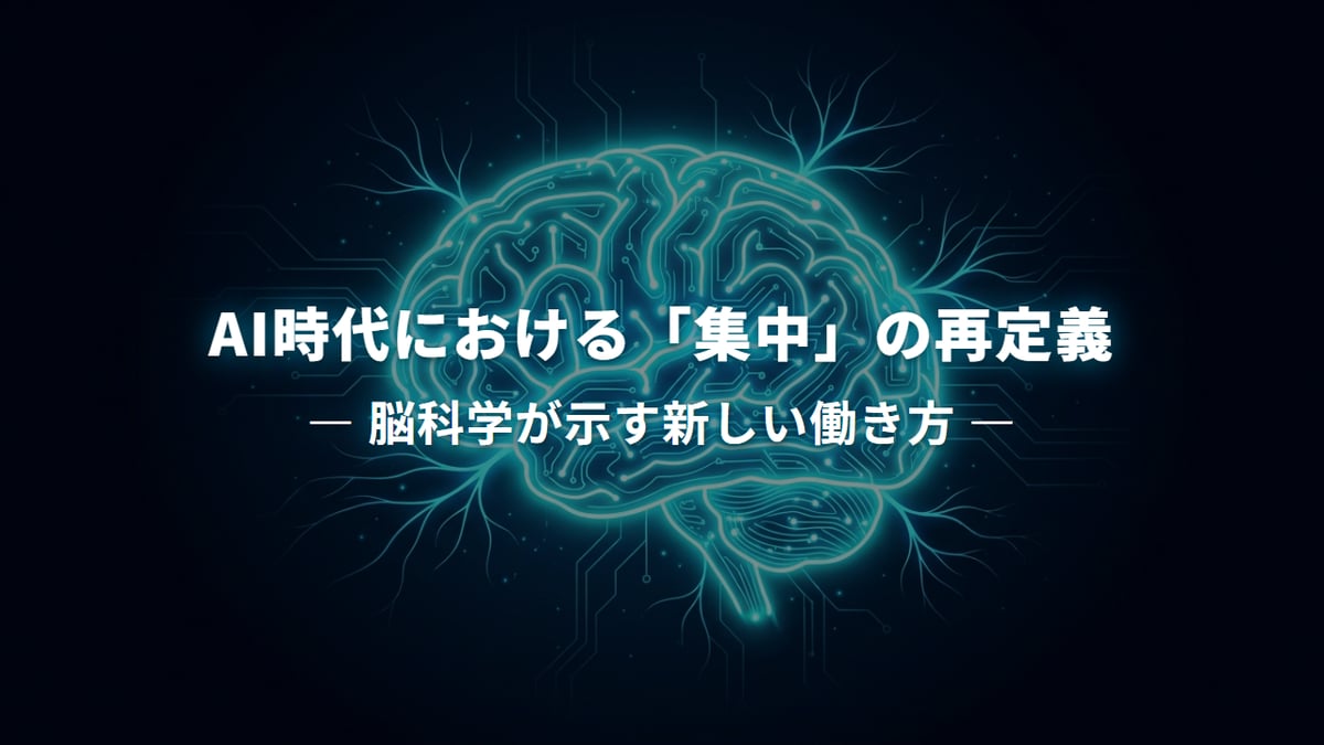 この疑問を出発点に、認知科学・脳科学の研究を調査した。すると見えてきたのは、従来の仕事術を修正するのではなく、人間の脳のハードウェア仕様から作業法を組み立て直す方が合理的だということだった。AI協働のサイクル(指示→待機→レビュー→修正指示)は、実は脳の自然なリズムと相性がよい。問題は作業形態ではなく、旧来の「集中」の定義に縛られた認識の方にある。
